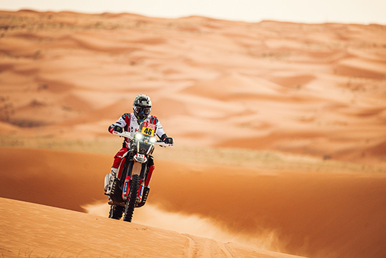 Ross Branch: « Today was a long stage, and a little bit risky in the morning with all the camel grass and the dunes. We lost a bit of time, but nothing too serious. It was a good stage, and overall I was able to manage the stage well. We’re in a good stage for tomorrow, the bike’s doing great and the team’s putting in the best of their efforts. Looking forward to tomorrow! »