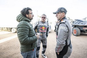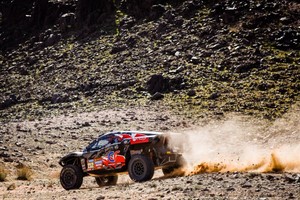 L’opération du jour ne lui garantit pas la victoire finale, mais le coup consistant à parcourir ‘en convoi’ la spéciale, encadré de ses deux coéquipiers Mattias Ekstrom et Stéphane Peterhansel comme gardiens, a pu donner de l’air au chef de file des Audi. Il maintient encore à une distance raisonnable son poursuivant direct, à un stade où chaque étape constitue un pas de géant vers le succès. Sébastien Loeb admet aisément que dans sa position de chasseur, ses options stratégiques se réduisent maintenant à l’attaque maximale, avec la part de risques que cette cavalcade comprend. Le Français a remporté aujourd’hui sa quatrième victoire de l’année, flirtant avec la limite puisqu’il a tout de même ‘percé’ deux fois en cours de route, mais garde une capacité à faire trembler ‘El Matador’. Rien ne semble impossible par beau temps pour le pilote du Hunter de BRX, mais les 20’33 qui le séparent de Sainz lui demanderont de rouler en mode super-conquérant. Contrairement à son rival, il n’aura que peu de soutien de son coéquipier Nasser Al Attiyah. Le quintuple vainqueur qatarien, qui a dû quitter la spéciale pour la deuxième journée consécutive sur problèmes mécaniques, ne prendra le départ que très loin de Loeb… dans le meilleur des cas.