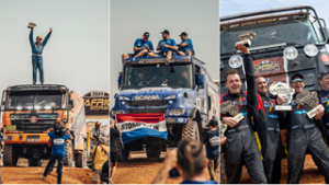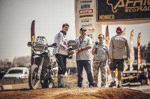 Dans la catégorie Moto, l’ensemble des pilotes de l’Africa Eco Race 2024 avait décidé de mettre à l’honneur l’un d’entre eux à savoir le pilote handisport Nicola Dutto. Pour se faire, les motards se sont mis derrière l’Italien et ses deux anges gardiens qui l’ont accompagné tout au long du rallye et ils l’ont laissé ouvrir et remporter cet ultime secteur chronométré. Une façon de rendre hommage à ce sportif hors du commun qui a parcouru les presque 6000 km du parcours sanglé sur sa KTM équipée d’un arceau protégeant ses jambes en cas de chute.