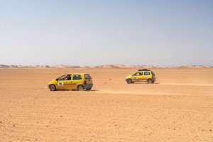 « Il était temps de donner à cette icône des années 90 son raid. Largement produite, fiable, légère et peu coûteuse, la Twingo 1 est parfaite pour traverser le Sahara. »