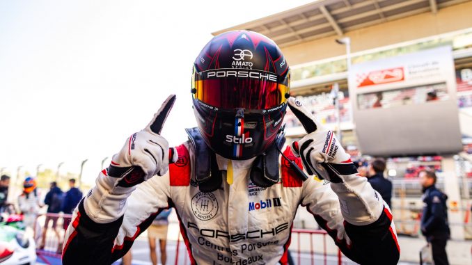 son palmarès. Parti devant en course 1, Alessandro Ghiretti devance Mathys Jaubert (Martinet by Alméras) qui termine quant à lui sur la deuxième marche du podium. Louis Perrot, lui aussi arrivé chez CLRT Schumacher cet hiver, débutait sa nouvelle aventure par un podium. Longtemps à la bagarre avec le double champion Marvin Klein (ABM), Victor Bernier commençait sa carrière en GT par un joli top-5 et une victoire en Rookie. Dans le top10, Marcus Amand (Schumacher CLRT) et le Junior Porsche Carrera Cup France 2024, Paul Cauhaupé (CLRT Schumacher) complétaient le top-3 de la catégorie.
