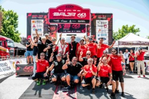 Overdrive Racing’s Guillaume de Mévius and Mathieu Baumel made a superb start to their new partnership to clinch a memorable victory in the gruelling Baja Spain Aragón, round three of the FIA World Baja Cup.