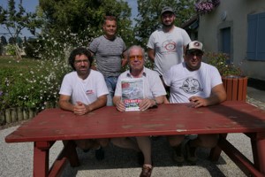 Légende photo : Les co-présidents, Laurent Laulhé et Adrien Elbounia entourent le directeur de course adjoint René-Jean Hulot, sous le regard de Martial Jamier (voiture info du rallye) et Dorian Bordes le co-pilote de Miélande.