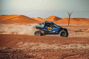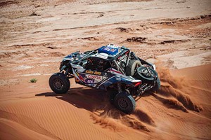 The route headed from Zagora to Mengoub-Bouârfa on day three and included a stage of 324.23km with large stretches of water prevalent between the Merzouga dunes after recent intense rainfall. Miller and Lopez again blitzed the SSV opposition in the development Maverick Rs, while Baciuška finished the stage in eighth of the classified Challenger drivers and mathematically confirmed the Challenger title with two days to spare.