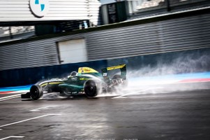 Lors du dernier affrontement du meeting, sous une pluie battante, Nano Lopez et sa Formule Renault 2.0 créaient l’exploit en dominant l’ensemble des F3R. Véloce sur piste humide, l’Argentin doublait les cadors du championnat avant de creuser un écart notable sur ses poursuivants.