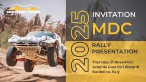 La présentation du rallye débutera à 20h30 et durera 45 minutes. Nous conclurons, bien sûr, avec un ou plusieurs verres de bon vin Rizzardi et un buffet. La participation est gratuite, mais l’inscription préalable est obligatoire par e-mail à gert@morocco-desert-challenge.com