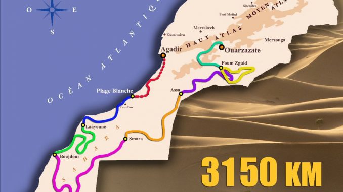 Après deux tours de reconnaissance, notre directeur sportif Jean-Claude Kaket a annoncé que le parcours serait légèrement modifié. Le bivouac marathon près du poste de Guelta Zemmur sera supprimé, et les anciennes étapes 4 et 5 seront combinées en une étape monstrueuse de pas moins de 527 km.