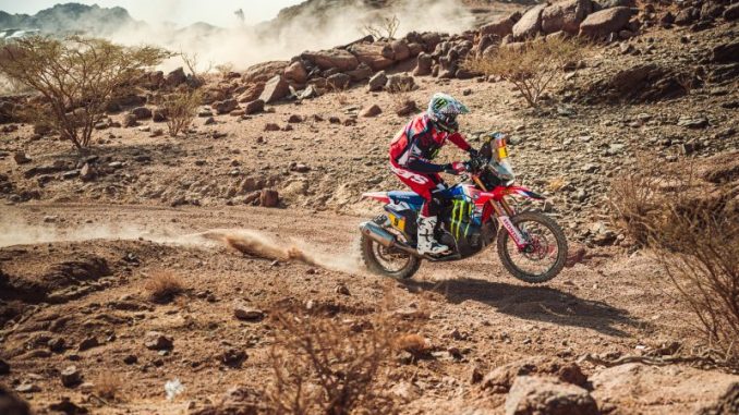 There will be nearly 500km of riding on stage one, 413km of it against the clock over a mixture of terrain on a southern loop from Bisha; stony sections, sand and tricky navigation amongst the labyrinth of tracks will put them through their paces as they also strategise for the upcoming 48 Hour Chrono. That second 48 hour stage over two days is one of the hardest tests in any form of motorsport with all competitors sleeping out under the stars with simple rations for overnight food, but Monster Energy Honda HRC are the reigning ‘champions’ of the 48 Hour Chrono after Adrien Van Beveren won it last year.