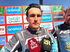 « On n’en espérait pas tant aujourd’hui, hier pour nous, on avait abandonné, on n’arrivait plus à avancer, on avait déjà perdu 40 minutes. On a fait 900 km de WRC quand la voiture marchait. C’était à bloc partout et finalement on a réussi à recoller à la tête de la course aujourd’hui. On reprend pas mal du temps que l’on avait perdu, je crois que l’on est à 14 minutes du scratch en ayant perdu 40 en cours de route, c’est plutôt pas mal. Hier la voiture a commencé à chauffer, on s’est rendu compte que le ventilateur avant ne tournait plus, on a commencé à perdre de la puissance et on s’est trainé comme on a pu avant de perdre un ventilateur arrière, il n’en restait plus qu’un. On avançait à 30 km/h avant de perdre le 3e ventilateur et que la voiture ne s’arrête complètement. On a dû attendre qu’elle refroidisse pour la redémarrer, on avait récupéré un ventilo et on est allé au refuel comme ça en attendant sur chaque sommet de dune qu’elle refroidisse pour monter celui d’en face. D’un coup un ventilateur s’est mis à remarcher. Pablo et Cristina sont arrivés et nous ont aidé, surtout Pablo qui est bon mécanicien. Ils nous ont donné un relais que l’on avait déjà changé et grâce à lui pour ce ventilateur, au hasard pour les autres, cela s’est mis à remarcher, et depuis c’est à bloc. C’est un souci que l’on a depuis le mois de juillet et c’est ce qui m’inquiétais le plus en venant ici. J’espère que cela va marcher. »