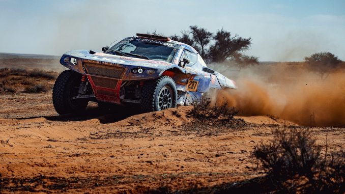 « The first 60 kilometers were nothing but rocks, » Tom looks back on the stage of 415 kilometer in length. « And since we started so far back, there were already deep ruts and plenty of fesh fesh. We had one flat tire but, after a quick change we didn’t have any other issues. The car didn’t flinch. Okay, the windshield wiper on my side is broken. I can’t see a thing in the dust, but if that’s all, I’ll take it. »