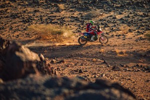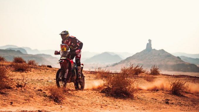 It was a very cold morning for the Monster Energy Honda HRC riders as they headed out of Al Henakiyah onto the marathon stage of this year’s Dakar Rally. The staggering rock formations on the way to AlUla would provide a technical day on the volcanic rock tracks as they made their way north across the 415km special towards the heart of Saudi Arabia’s UNESCO World Heritage site.