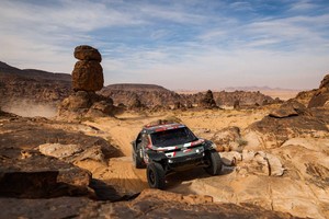 En prenant beaucoup de hauteur, c’est sur une ligne droite ouest-est qu’a été tracée la spéciale du jour, comprenant 428 km à cheval sur les provinces d’Al Ula et de Hail. Puis on rétrécit le cadre et on réalise que les pilotes et équipages ont droit à une étape particulièrement variée, avec autant de pistes sablonneuses et roulantes que de passages rocailleux, par moments volcaniques, incitant à la retenue. À hauteur de pilote, on fréquente par exemple des créatures rocheuses aux allures lugubre ou avenante, c’est selon, mais qui ne donnent jamais une indication claire sur la direction à choisir. La navigation est restée délicate sur la dernière partie de la spéciale, où il a également été question de ménager ses pneus sur les gros graviers. Luciano Benavides n’est tombé dans aucun de ces pièges pour dominer l’étape sur deux roues, ni Seth Quintero, qui s’impose pour la deuxième fois de la semaine avec une seconde d’avance sur Nasser Al Attiyah, de nouveau dans le match.