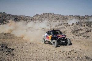 Yazeed Al Rajhi, 5è du jour derrière Henk Lategan le leader à mi-course, perd du terrain sur le Hilux TGR South Africa au général. Mais le Saoudien est en embuscade en 2è position du général à 10’17’’ du Sud-Africain. « L’étape n’a pas été facile. Nous avons ouvert la spéciale jusqu’au kilomètre 200 environ, sans prendre de risque car nous avions un petit bruit qui provenait de l’arrière de la voiture que l’on devait ramener en un seul morceau jusqu’au bivouac avant la deuxième semaine pour laquelle nous sommes en bonne position. La première semaine a été la plus dure de ma carrière sur le Dakar. Toutes les étapes étaient longues, dures et difficiles partout. L’année dernière j’étais en tête de la course jusqu’à la veille de la journée de repos quand je suis parti en tonneau à cause d’un problème de suspensions. Aujourd’hui, nous sommes proche de la tête avec 10 minutes de retard, ce qui n’est rien. Dans les dunes, sont sommes capables de faire très bien. »