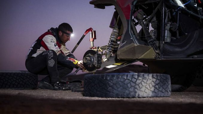A l’issue de l’étape marathon et avant les 428 km de spéciale en direction de Hail aujourd’hui, les pilotes n’ont pu bénéficier de l’assistance de course hier soir. Comme lors de la 2è étape baptisée ’48 heures chrono’, déroulée sur deux jours dimanche et lundi derniers, aucun véhicule d’assistance n’ont pu accéder au bivouac, les concurrents étaient donc livrés à eux-mêmes.