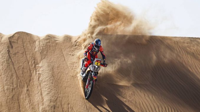 Stages three and four were a marathon stage, again with no assistance overnight and another sleep in a tent in the desert. Riders had to be mindful of conserving their bikes, and tire wear was certain to play a part if they weren’t careful. To add a bit more intensity, the competitors also only had 30 minutes to work on their machines upon arriving to the bivouac. Riders have a general good knowledge of bike maintenance that they can utilize in these parts of the race. Sanders won the second part of the marathon stage having had trouble with his navigational equipment on stage three. It’s worth noting that this year it’s mandatory to use a digital roadbook, which is essentially what riders use to navigate in rally with a series of symbols and information, which was formerly and historically a very long paper scroll.