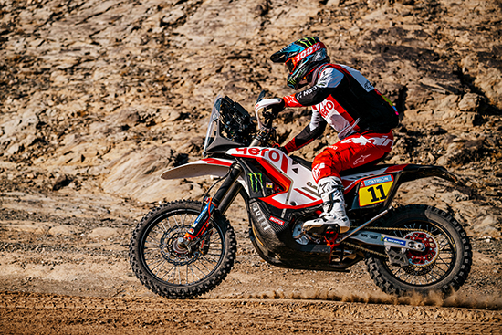 Tomorrow’s Stage 9 – a very fast stage mainly on dirt tracks – will cover 357 km of timed specials as the rally heads eastwards from Riyadh to Haradh. With an additional 232 km of liaisons, riders will face a long day ahead, tackling a total distance of 589 km. The stage will favour the competitors who love maintaining high speeds. The current state of the rally will influence each competitor’s strategy, and will require them to push their machines hard to stay in contention.