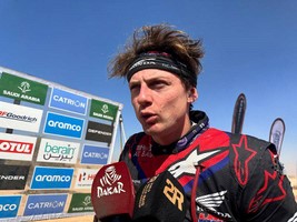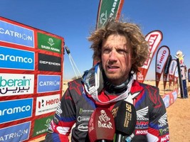 « J’ai chuté fort environ au km 20, je n’avais pas une bonne visibilité à cause de la lumière du matin. J’ai perdu du temps à remettre la moto en ordre, Ricky est arrivé et nous avons roulé ensemble jusqu’à l’arrivée. Cela fait partie du jeu. Je suis OK. Après une chute comme ça mon corps va me faire souffrir, mais je vais profiter du repos de cet après-midi pour être prêt pour demain. »