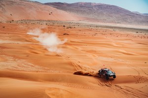 Restarting from the Marathon Camp in first place this morning, Nasser Al-Attiyah and Édouard Boulanger shrugged off being hampered by opening the road to complete the 300-kilometre Stage 4 with the third fastest time aboard their sustainable-fuelled Dacia Sandrider.