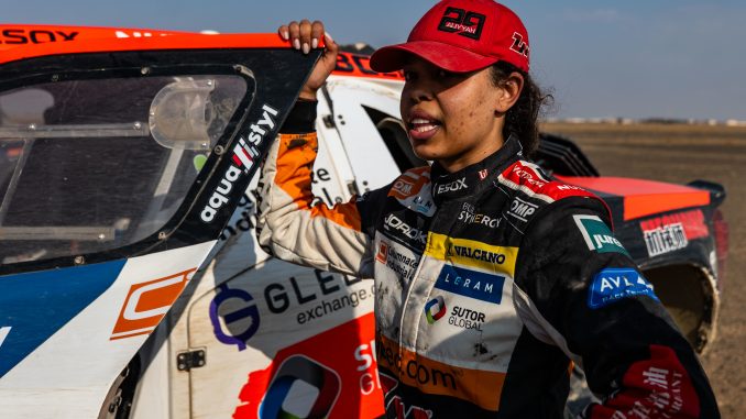 Aliyyah Kolock et son navigateur Sébastien Delaunay sont partis en tonneaux dans les dunes au km 38. L’équipage Buggyra ZM Racing est indemne mais la pilote a été évacuée par précaution en hélicoptère pour un examen à l’hôpital.