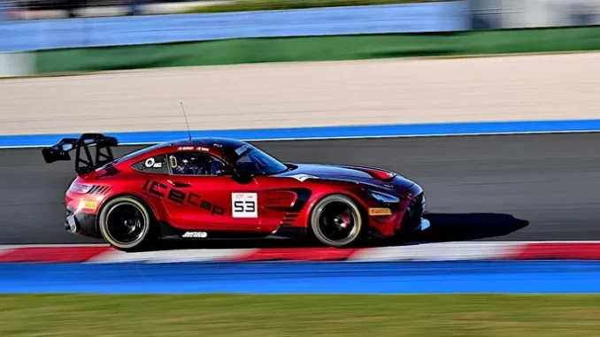 Pascal Gibon est installé dans le cockpit de la Mercedes-AMG et s’élance depuis le fond de grille. Bien décidé à ne pas y rester, il attaque d’entrée de jeu et reste au contact du peloton, jouant avec ses adversaires.