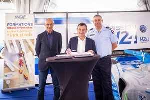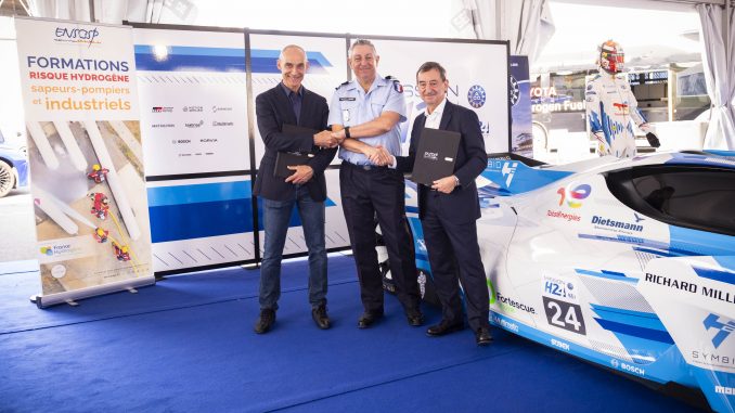 MissionH24, (programme en collaboration de l’Automobile Club de l’Ouest et H24Project pour le déploiement de l’hydrogène en compétition automobile), et l’École nationale supérieure des officiers de sapeurs-pompiers (ENSOSP) officialisent ce 8 octobre, un partenariat de formations au risque Hydrogène au profit des industriels de la filière, à l’occasion du 131e congrès national des sapeurs-pompiers, organisé au Mans, sur le mythique circuit.