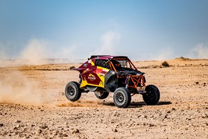 Young Mohammed Al-Marri grabbed the early advantage in the SSV class, the Qatari finishing less than half a minute ahead of runaway FIA World Baja Cup category leader Mitchel van den Brink. Mattias Ekström. Mohammed Al-Attiyah and Paul Severn were in close attendance but Oman’s Hamed Al-Wahaibi was forced to retire his Can-Am after sustaining three flat tyres.