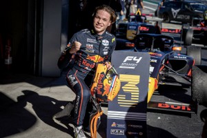 Formula 4. The race started behind the safety car because part of the track was still damp. Once the field was released, Coronel managed to maintain his position. This was also the case at the end of a second safety car intervention, and he eventually crossed the finish line in third place. This secured his first top-three finish. « Unbelievable, I never thought I would be on the podium already. Beforehand, we had said that something around tenth place would be great, but a trophy is of course really cool, » said Coronel.