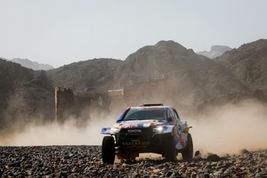 C’était pourtant mal parti…En cause : une nuit et un sommeil perturbés par un SMS porteur de mauvaise nouvelle. «Hier soir, à la réception de l’ordre de départ, on découvre avec Gilles qu’on part 79è, au milieu des camions et des SSV !» Le règlement, son application et son interprétation…Ni une ni deux, Gilles Pillot s’en va plaider sa cause dans la nuit saoudienne. Navigateur expérimenté, le bisontin ferait un excellent avocat : partiellement reclassé, l’équipage #235 grappille quelques places et se lance dans une folle remontée ! « On a dépassé, dépassé…Une quarantaine de voitures environ ! Tout ça dans la poussière, sur une centaine de kilomètres. On y a laissé pas mal de temps ! Durant les 200 derniers kilomètres, il y avait un peu moins de monde, on a pu rouler correctement. » Chevauchée conclue à la 34è place du jour, dans la même seconde que leur coéquipier, le chilien Hernan Garcès. Egalité parfaite après 400 kilomètres…nos deux complices, 32è du général, n’amusent pas le terrain !