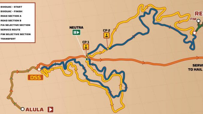 Après une liaison de 64 kilomètres, les motards FIM disputeront une spéciale longue de 417 kilomètres, contre 452 pour les véhicules FIA. Pourquoi cette différence ? Parce que les deux courses n’empruntent pas le même parcours ! La mesure permet aux équipages FIA d’arriver plus tôt lors des longues journées. Elle remet aussi la navigation au centre du jeu, les autos ne pouvant pas bénéficier des traces laissées par les motards.
