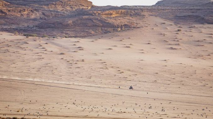 La stratégie compte en rallye-raid, et le phénomène du yo-yo fait partie des craintes légitimes des pilotes de pointe, surtout lorsqu’il s’agit de se lancer dans une séquence décisive en vue de la conquête du titre. Tosha Schareina n’a pourtant tremblé ni hier, ni aujourd’hui pour remporter deux spéciales consécutives. S’imposer en ouvrant la piste, c’est le nec plus ultra pour un motard du Dakar. Le pilote espagnol s’est acquitté de cette tâche avec autorité, a parcouru seul en tête la moitié des 417 km de la spéciale pour remporter sa quatrième étape sur l’épreuve.