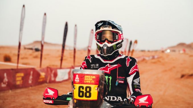 Monster Energy Honda HRC’s Tosha Schareina delivered a barnstorming performance to claim his first stage victory of this year’s Dakar Rally.