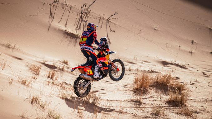 Pourtant, l’étape 100% sable de la première partie du Dakar 2026 fut remportée haut la main par l’Australien. Après avoir rattrapé Luciano Benavides peu après la neutralisation, il a ouvert et imprimé un rythme d’enfer jusqu’à l’arrivée.