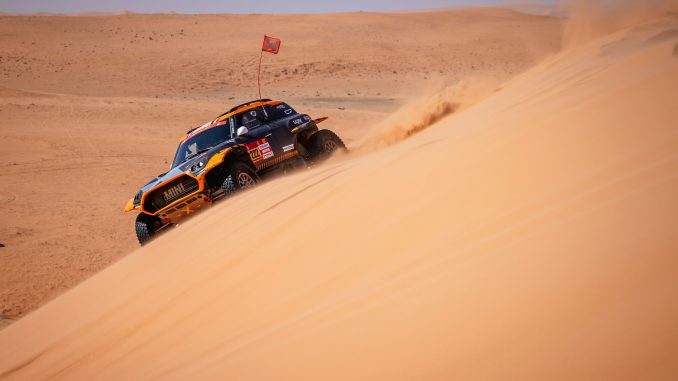 Après leurs déboires au cours des étapes 4 et 5, Guillaume de Mevius et Mathieu Baumel remontent chaque jour dans le classement par étape. Quand la Mini est fiable et fonctionnelle, l’équipage peut rouler sur un bon rythme, jouer la gagne et espérer renouveler l’exploit signé au cours de l’étape 1.
