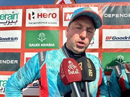 « J’ai eu trois crevaisons aujourd’hui. Mais tout le monde a rencontré des problèmes aujourd’hui. Après la moitié de la spéciale j’ai dû ralentir car j’avais déjà crevé deux fois. Après on a trouvé Nasser et d’autres qui tournaient et on a fait de même, mais on a trouvé le point. Ensuite on a crevé encore une fois. Mais on est ici. Je savais ce matin que demain un jour crucial. Il faut rester humble et calme demain. »