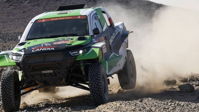 Il est toujours tentant d’esquisser un sourire en entendant les ultra-optimistes qui se projettent sur le toit du monde avant d’avoir grimpé la moindre petite butte. Lorsqu’il avait 17 ans, Eryk Goczal n’avait pas encore passé son permis de conduire, mais rêvait déjà haut et fort alors qu’il accompagnait son père et son oncle, déjà engagés sur le Dakar en SSV pour lui préparer le terrain. C’était en 2022. Depuis, la progression du jeune Polonais a simplement été fulgurante : vainqueur de la catégorie SSV en 2023, interrompu par une disqualification pour inconformité technique de son Taurus, il a entre temps remporté une spéciale sur l’Abu Dhabi Desert Challenge 2025 dans son premier Toyota Hilux, et fait maintenant son entrée avec la manière parmi les Ultimate du Dakar.