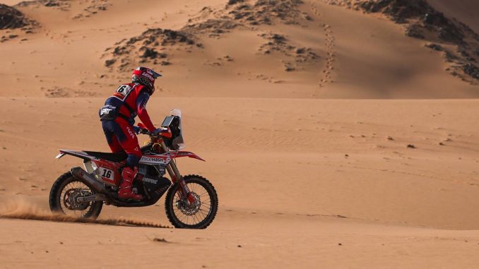 C’est Preston Campbell, le néo-officiel Honda HRC qui occupe ce rang, devant Toni depuis l’étape 6. L’écart entre eux est allé jusqu’à 17’28 hier. Aujourd’hui, le pilote BAS World KTM a fait le forcing pour revenir à 2’31 de l’Américain qui commence à voir rouge. Le match de la deuxième division moto va se jouer entre eux, leurs poursuivants se trouvent à plus d’une heure trois quarts.