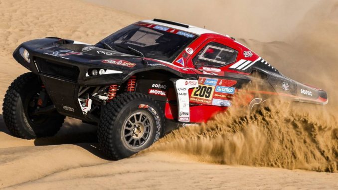 Ce n’est pas exactement une rareté, puisque la dernière fois que ce phénomène s’est produit remonte à l’édition 2024, un jour où sur la route d’Al Ula, c’est Sébastien Loeb qui avait accompagné VBA pour la cérémonie de remise des médailles du soir au bivouac. Le doublé ‘bleu-blanc-rouge’ observé à Bisha se distingue toutefois puisque le pilote Varois n’est pas encore à ranger parmi les collectionneurs de spéciales, il s’agit seulement de sa deuxième, après avoir ouvert son compteur en 2020 alors qu’il courait en deux roues motrices.