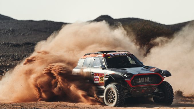 The second day of the second marathon stage proved to be a major challenge for the X-raid crews. Guillaume de Mévius and Mathieu Baumel, who had secured an impressive fifth place yesterday in their MINI JCW Rally 3.0i, were hit particularly hard today. At times, they were forced to open the stage in the dunes – meaning they had to navigate and lay down tracks for the competitors behind them. They ended the day in 35th place. Lionel and Lucie Baud were unable to repeat yesterday’s top performance. They became stuck in the soft sand with their MINI JCW Rally 3.0d and lost significant time. The father-daughter duo finished the stage in 91st position.