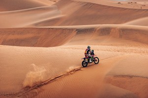 After winning the previous stage, Schareina faced the difficult task of opening the route and paid the price early, losing 17 minutes within the first 123 km. Later working alongside Brabec to assist Sanders, the Spaniard then settled into a steady rhythm through the relentless dunes. Despite finishing sixth, 5’28” of bonus time for running at the front moved him onto the provisional podium in third overall. With a more favourable starting position tomorrow, he has a strong chance to extend his nearly two-minute gap to Sanders, who is now in fourth.