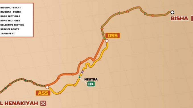 La spéciale du jour devrait être l’une des plus rapides de l’année en termes de vitesse moyenne. « La difficulté ne tient pas à la nature des terrains, mais avec le nombre de croisements, de fourches et de bifurcations, l’ambiance peut vite tourner au labyrinthe. La lucidité et la concentration seront les meilleures alliées de ceux qui comptent atteindre sans dommage le bivouac de Al Henakiyah. D’autant plus que le kilométrage total rend l’étape éreintante », prévient l’organisation. Le terrain sera composé à 83% de terre, 10% de pistes caillouteuses et 7 % de traces sablonneuses.