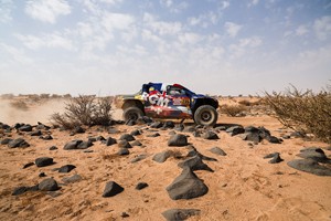 Pour corser un peu l’affaire, le duo s’est offert un petit concerto a capella, bien malgré lui. « On a cassé l’alternateur, qui est venu se poser sur le châssis. Ça faisait caisse de résonance dans l’habitacle ! » Sans alternateur, pas d’alternative. « On a hésité à s’arrêter, mais on aurait perdu le contact avec le petit groupe où nous étions. Du coup, on a continué ! » Petite péripétie sans conséquence : 31è du jour, le Hilux GR DKR reste 26è du général.