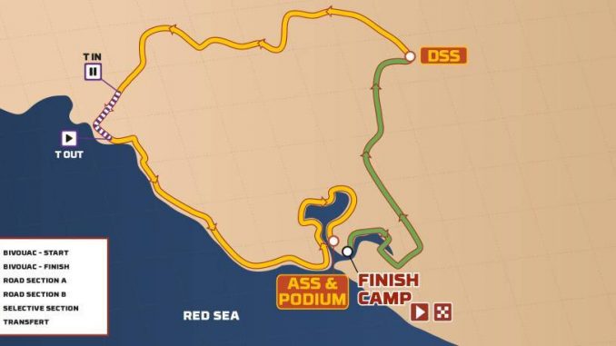 La spéciale de 105 kilomètres est divisée en deux sections bien distinctes. La première partie ira chercher les dernières pistes sinueuses dans les vallées, alternant entre pistes sablonneuses et caillouteuses. Attention toutefois aux ondulations et au soin des trajectoires. À la sortie de ces reliefs, un transfert emmènera les concurrents en bord de mer Rouge pour un ultime secteur rapide sur des pistes larges, sinueuses et parfois entourées d’eau de part et d’autre. L’arrivée finale sera jugée au cœur du bivouac de Yanbu.