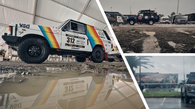 À Tanger, les conditions météorologiques — fortes pluies et vents soutenus — ont rendu la vie sur le parc d’assistance particulièrement compliquée. Dans ce contexte, le prologue initialement prévu le dimanche 25 janvier sur la plage de Tanger a dû être annulé, la plage n’étant pas praticable.