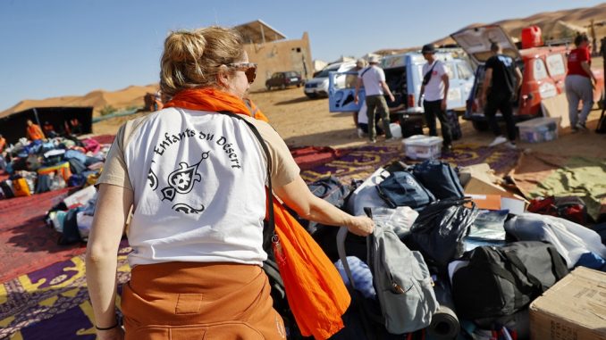 JOUR 6, on rentre dans le vif. D’abord en matière de compétition sportive mais aussi dans le volet solidaire de l’expérience. Pour commencer ce lundi, baptême d’orientation et de pilotage sur près de 300 kilomètres. Direction Merzouga, le décor le plus attendu de l’aventure, au pied des dunes du Sahara. Ensuite, cérémonie de remise des dons à l’association Enfants du désert, un des temps forts du 4L Trophy.