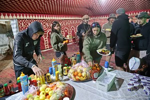 06h30 : Réveil au pied des dunes. Les trophistes émergent doucement, avec une démarche de pingouin : jambes lourdes, dos en compote et sable dans les chaussettes. Le désert a encore frappé.