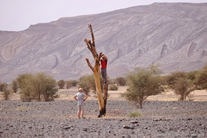 12h30 : Pause rapide sur la piste. Sandwich croquant (merci le sable). Et déjà, certains commencent à ramasser des morceaux de bois croisés en chemin. Réflexe de survie version désert : anticiper le feu de ce soir.