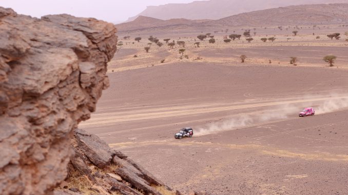 08h00 : Départ progressif vers Tazarine. Les voitures s’élancent une à une. Les copilotes récitent le roadbook comme une poésie. Les pilotes, eux, sentent déjà que la journée va être longue.