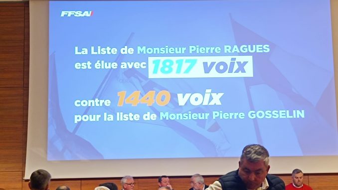 Il faut savoir que le corps électoral est composé de deux collèges d’égale importance, le collège ‘ligues’ et le collège ‘associations sportives’ (ASAs pour l’auto, ASKs pour le Karting). Deux listes étaient en présence : la liste présentée par Jacques Régis dirigée par sa marionnette de service, Pierre Ragues, qui recueille 1817 voix, soit 55,79% des suffrages exprimés, contre 1440 voix pour la liste Pierre Gosselin, soit 44,21% des suffrages. La liste Régis/Ragues a donc remporté l’élection, ce que personne ne conteste.